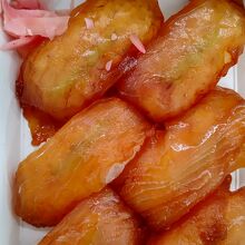 沖縄県那覇市にある割烹喜作が提供する大東寿司。大東といえば南大東島と北大東島があるが、ここで食べられる島寿司のことで、沖縄ではよく知られている。漬けられた魚を寿司のネタにしているわけだが、今回食べた大東寿司は鰆だ。醤油の味が濃く、鰆の味がよくわからなかった。しかしとても美味しく癖になる味。南北の大東島は利便性が悪くなかなか行くことができないので、ホンマもんの味を味わうのは大変だが喜作の大東寿司は気軽に食べることのできるきちょうなあじだ。