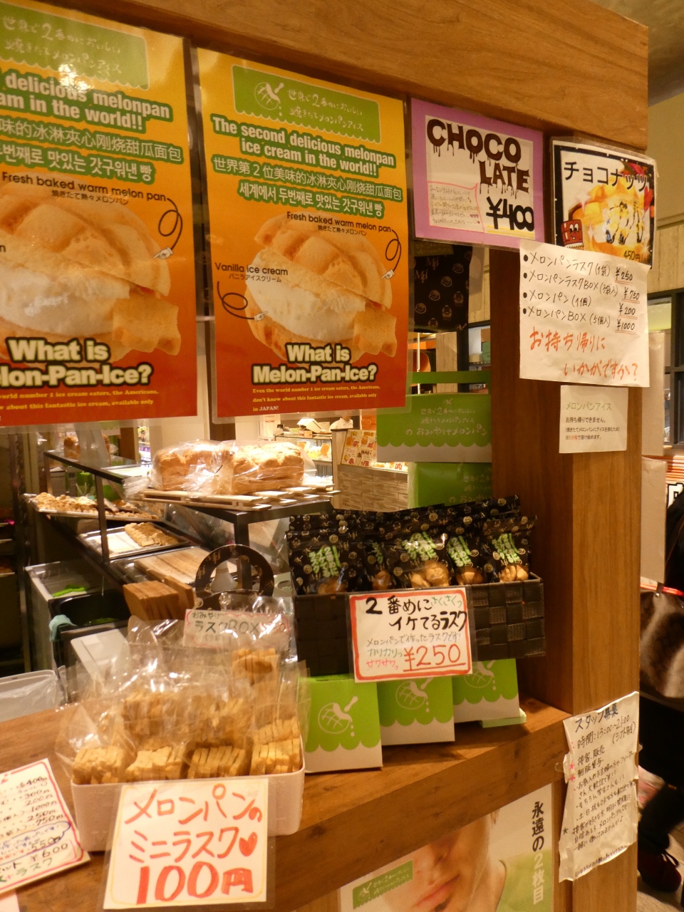 店頭のメロンパンのミニラスクも気になりましたがメロンパンアイスを注文するとスプーン代わりにアイスに1枚突き刺してくれます。