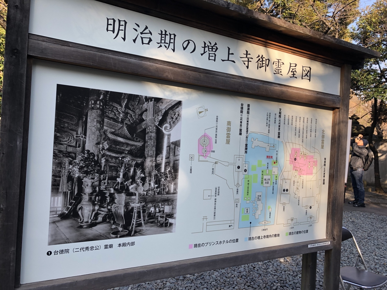 ちょうどボランティアガイドの時間にあたり、説明を聞きながら見学することができました。寡聞にして知らなかったのですが、増上寺境内に豪華絢爛な霊廟があったことを初めて知りました。今の墓所は改装されたものだそうですが、家茂公の墓は石だけど、皇族であった和宮の墓は青銅製、側室でも将軍生母はここに埋葬されているなど、いろいろ興味深い話が聞けました。歴史に興味のある方はぜひ。