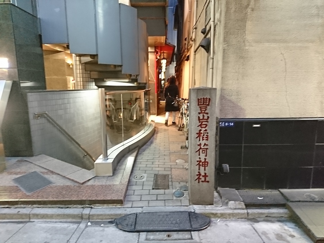 ビルとビルの間の狭い空間に鎮座している小さなお稲荷さん