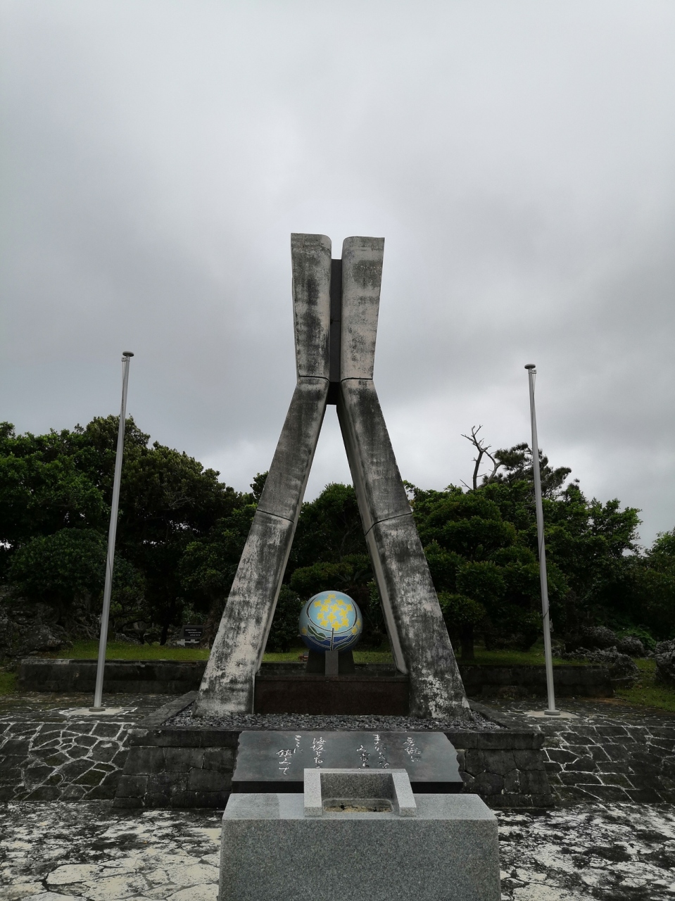 平和祈念公園の都道府県別の戦没者慰霊碑がある霊域ゾーンにあります。千葉県出身の沖縄戦没者1,608名と、南方諸地域戦没者34,085名が祀られています。塔の形は合掌を組んだ形となっており、慰霊碑らしいですね。