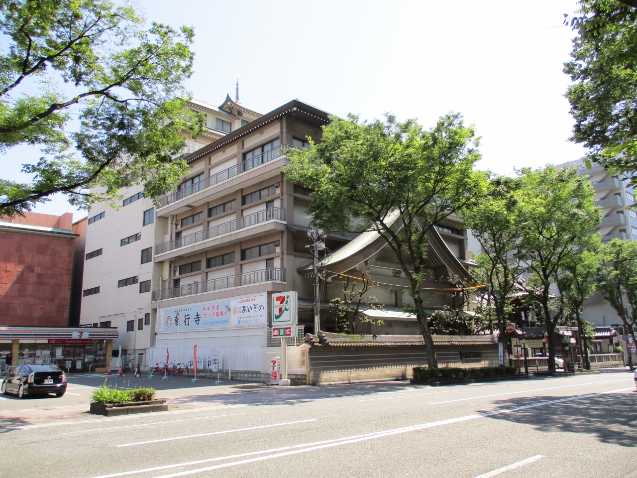 博多の祇園町にある大きなお寺があったので立ち寄ってみました。建物全体がコンクリート造りのビルとなっていて、ちょうどマンションの建物にお寺風の屋根を取り付けた感じで、ベランダのような場所も付いていました。道路から眺めるとちょっとバブリーで異様な雰囲気のお寺でした。
