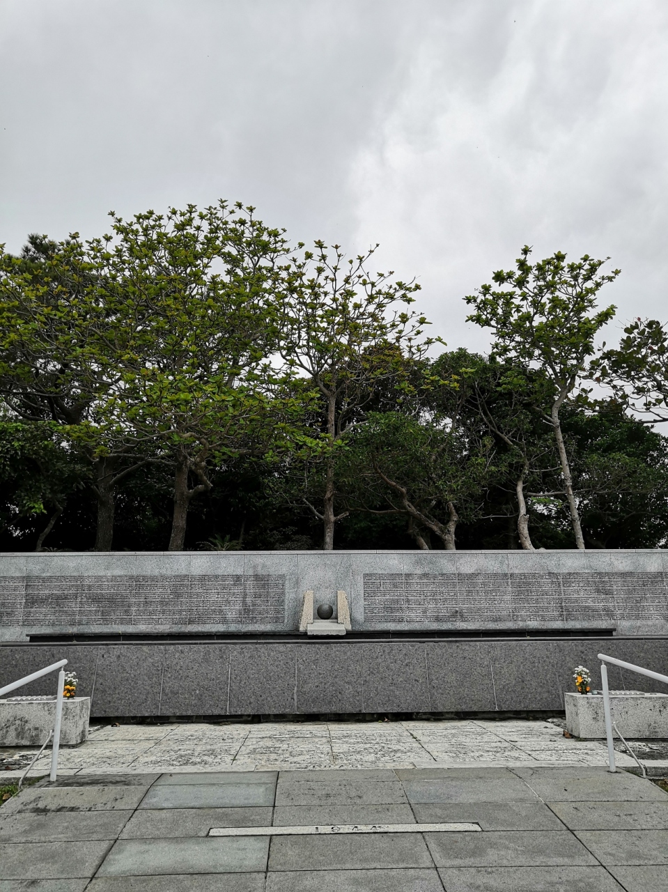 平和祈念公園には都道府県別の戦没者慰霊碑ある霊域ゾーンがありますが、こちらには兵庫県出身の沖縄戦戦没者3,073名が祀られています。名称ののじぎくは兵庫県花だそうです。塔基壇の中央にある玉に目が行きますが、戦没者を表しているそうです。なんか塔といった感じではないですね。
