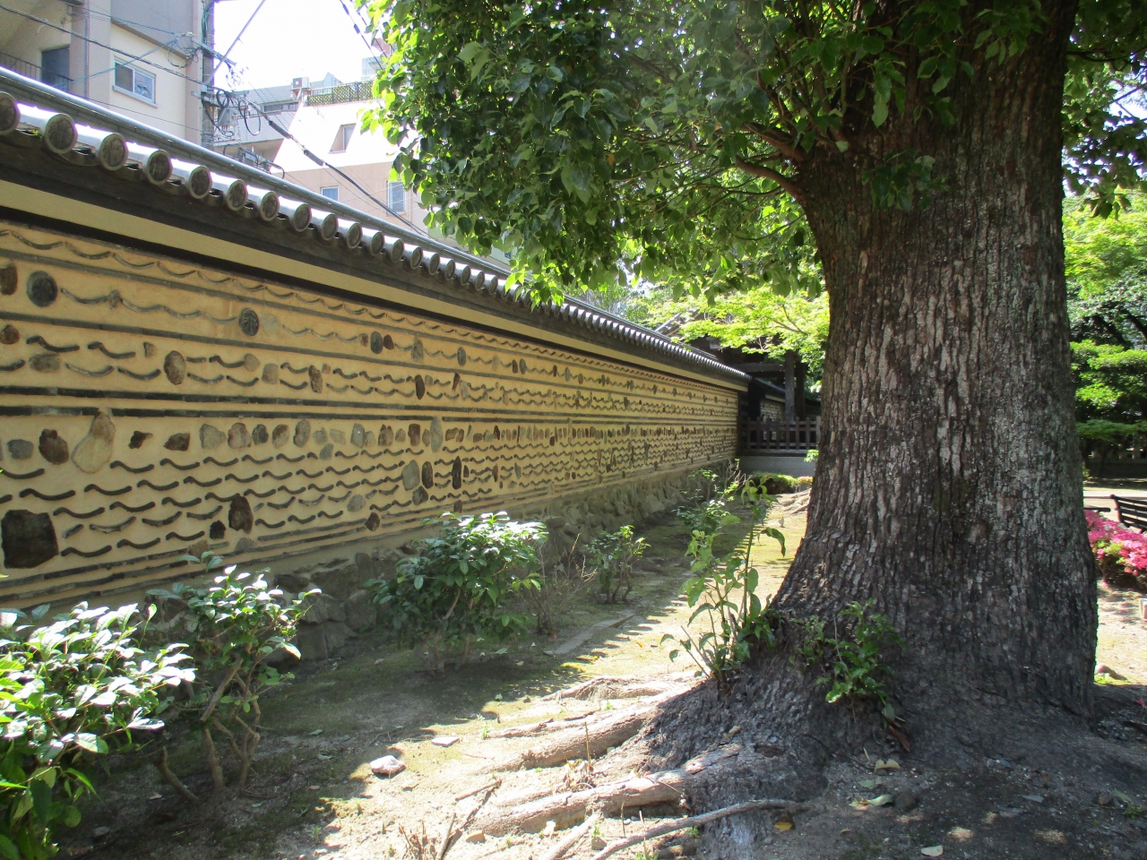 福岡の地下鉄祇園駅近くを散策していて、由緒がありそうなお寺があったので立ち寄ってみました。なんと鎌倉時代に日本で最初に創建された禅寺でした。境内は敷地も広く、山門や仏殿、鐘楼などの時代を感じさせてくれる建物ばかりでした。さらに日本発祥の茶の木や、廣田弘毅の菩提所石碑などもあり、お寺を囲む塀も博多べいが使われていて、見どころ満載のお寺だったので、時間を忘れて歩き廻ってしまいました。