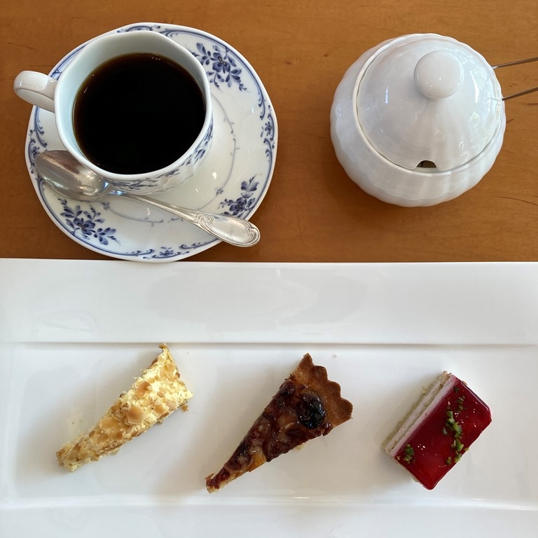 美術展を鑑賞した後に利用しました。ロセアン特製ケーキセットは、選べるケーキ3種類の盛り合わせにコーヒーが付いて880円と、破格値です!お庭が見える明るい雰囲気で、席への案内も、充分すぎるくらい間を空けて案内していただきました。会計時、ロープウェイの半券で割引がありました。