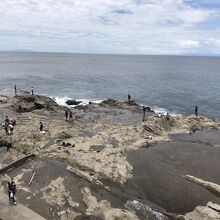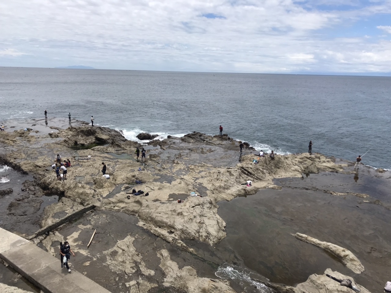 江ノ島を巡ると、たいていは一番最後に訪れることになる岩場です。多くの人が釣りを楽しんでいます。近くには小さな展望台もあり、そこから眺める風景もいいものです。