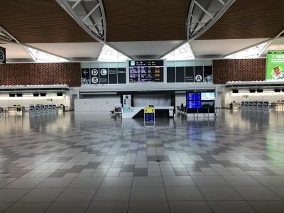 いつもは混雑しているはずに日曜の夕方、国際線も国内線も欠航が多くあり想像している以上に閑散としています。