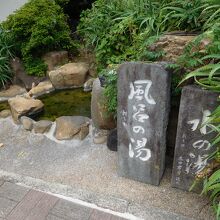熱海銀座から熱海駅方面へと向かって、坂道を歩いている最中に見つけました。道路沿いの一角に、緑の生い茂った場所に小池があり、そのすぐそばに「風呂の湯 水の湯」と書かれた石碑がありました。特に湯気は立っていなく、本当にお湯が入っているの?と思ってしまうような感じでした。