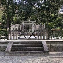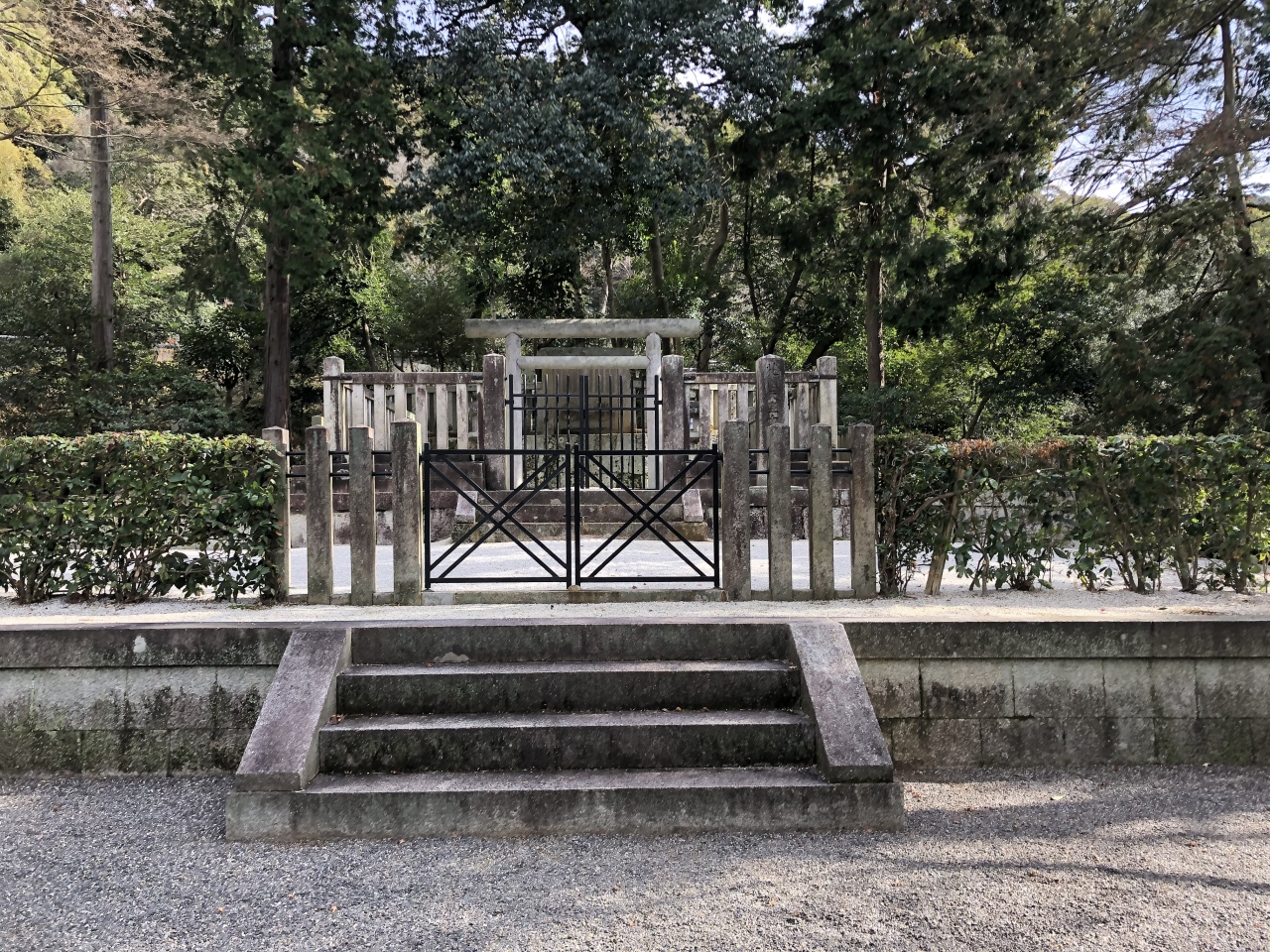 菊の御門の入った扉のある門を通り坂道を上がっていくと突き当りにあります。坂道は左手に青蓮院の庭、右手に知恩院の建物を見て歩く形になりますが、坂道は苔むしているので、雨の日などはすべりやすいかもしれません。陵は玉垣と門で二重に囲われていて、その外から参拝する形となります。