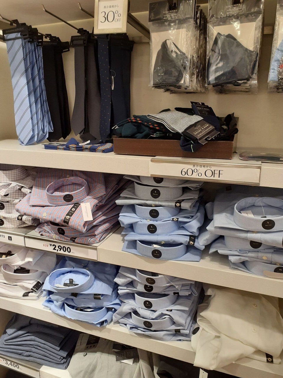 フォーマルのYシャツは60%オフで約3000円になっているました。