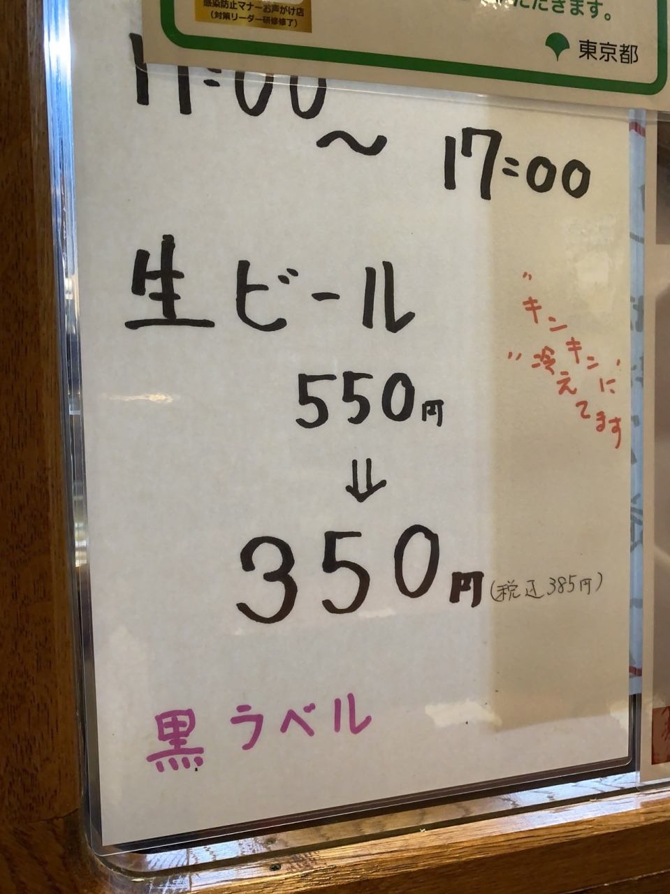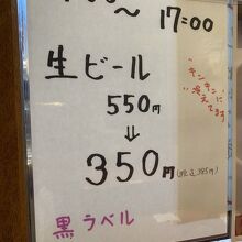 緊急事態宣言が解除された後だったためか、生ビールがお得なお値段で飲めました。