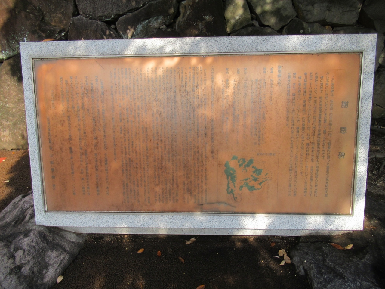 新型コロナウイルスの影響でマスクが欠かせない中、三密を避け日本100名城のひとつである「甲府城跡」を訪問しました。お城内を散策したのですが遠くからも眺めることができる高くそびえる石柱が気になっていました。よくよく調べてみるとこの「恩賜林謝恩碑」は大水害によって荒廃した県土の復興に役立てるよう、明治天皇が御下賜になったことを記念して建てられたもののようです。特に雨の多い夏になると日本列島の何処かで大きな水害が起こっていますね。被害が少なく安心安全に日々暮らせることを願うばかりです。