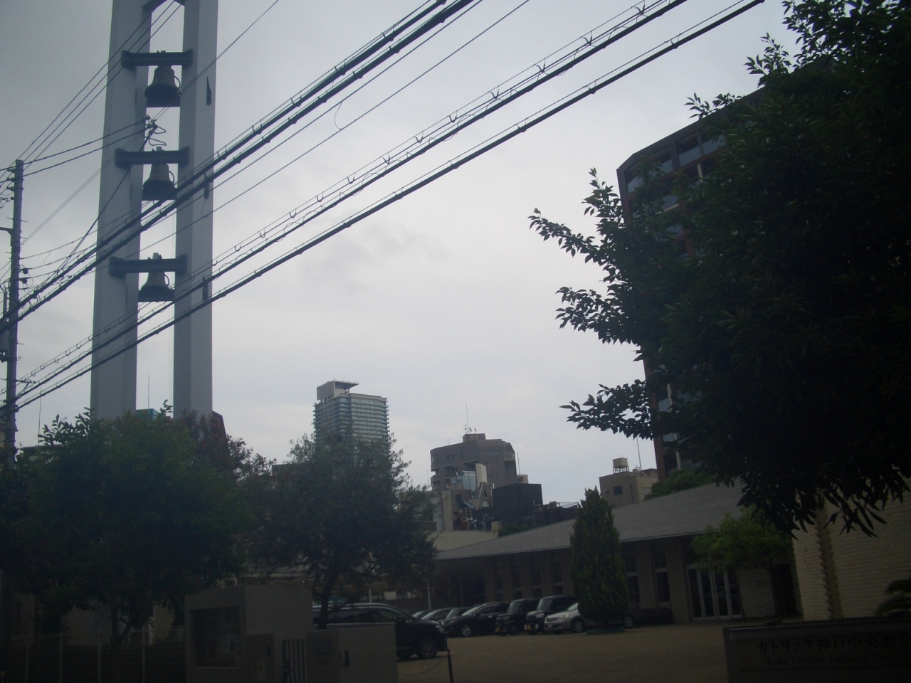 カトリック神戸中央教会は、JR三ノ宮駅から徒歩12分のところにあります。7月に異人館街へ行く途中に立ち寄りました。この教会は1995年に阪神淡路大震災で被災した灘、中山手、下山手の3つの教会を統合し、現在の場所に2004年に誕生した新し教会です。フランスから旧中山手教会に送られた3つの鐘がつるされた鐘楼が印象的でした。