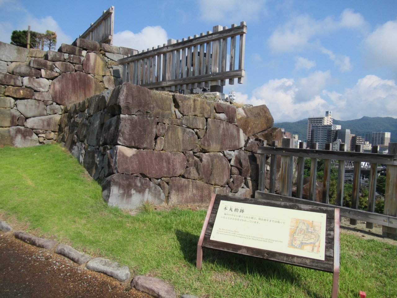 新型コロナウイルスの影響でマスクが欠かせない中、三密を避け日本100名城のひとつである「甲府城跡」を訪問しました。鉄門から本丸へ入りましたが建物はあまりまく天守台が目を引いています。その北側には石垣がありその上にはこの本丸櫓(二重櫓)が建っていたようです。たぶん本丸と繋がっていたのではないでしょうか。またその石垣には石垣の中にある水分を排水する暗渠がありました。合わせてご覧なってくださいね。ここから甲府の街を望むことができますよ。さらには天守台からは360度の展望ができます。