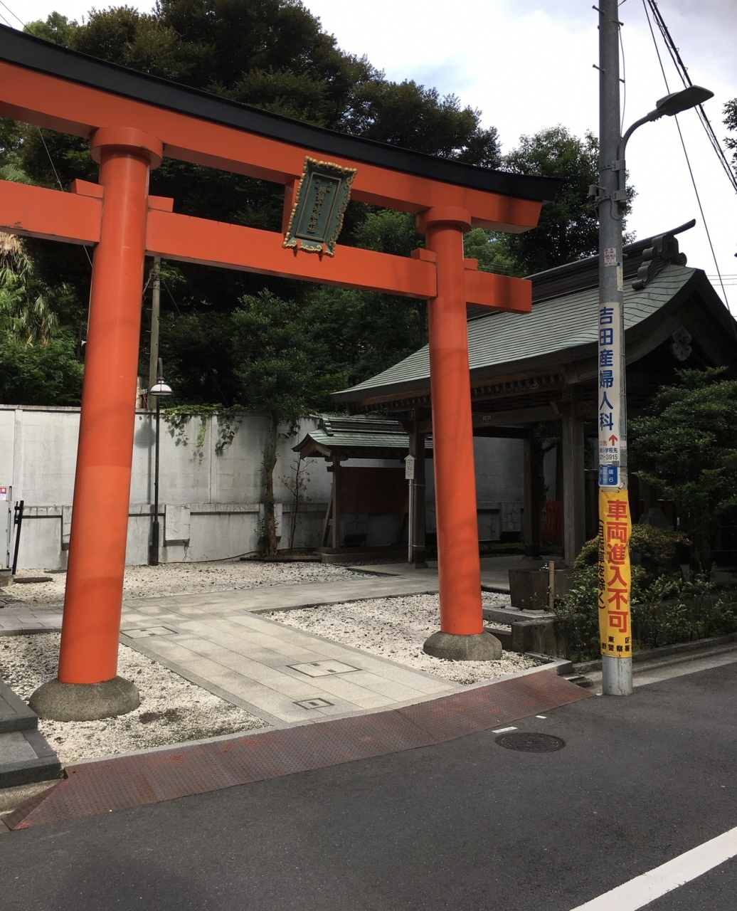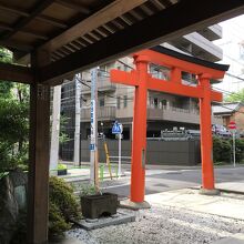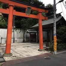 横には弁慶鏡井戸があり、青いポンプもあり説明看板がありました。江戸時代には名水として知られたようです。赤い鳥居を潜ると直ぐ右側には社殿があり、木の温もりを感じました。地面は舗装された場所と砂利で、周りは住宅街のためか狭い境内でした。