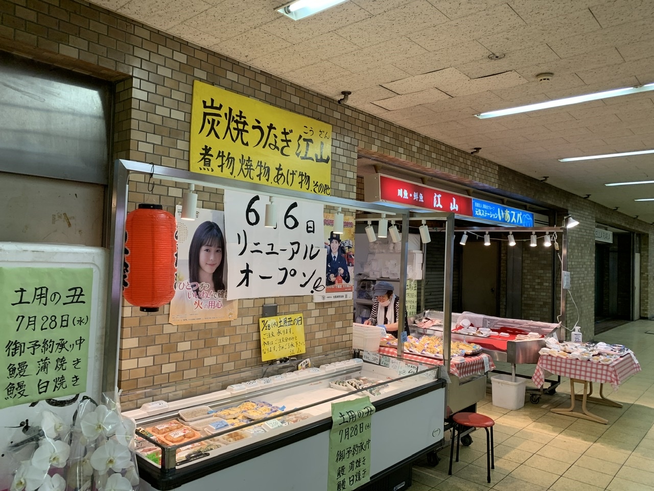 食べるスペースはなく、魚屋さんが焼き物を初めて惣菜として売っている店です。