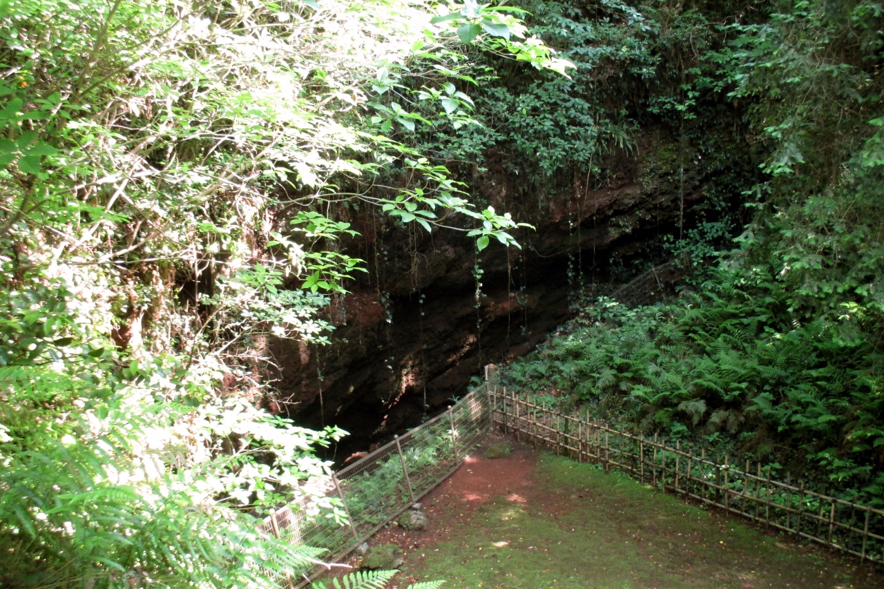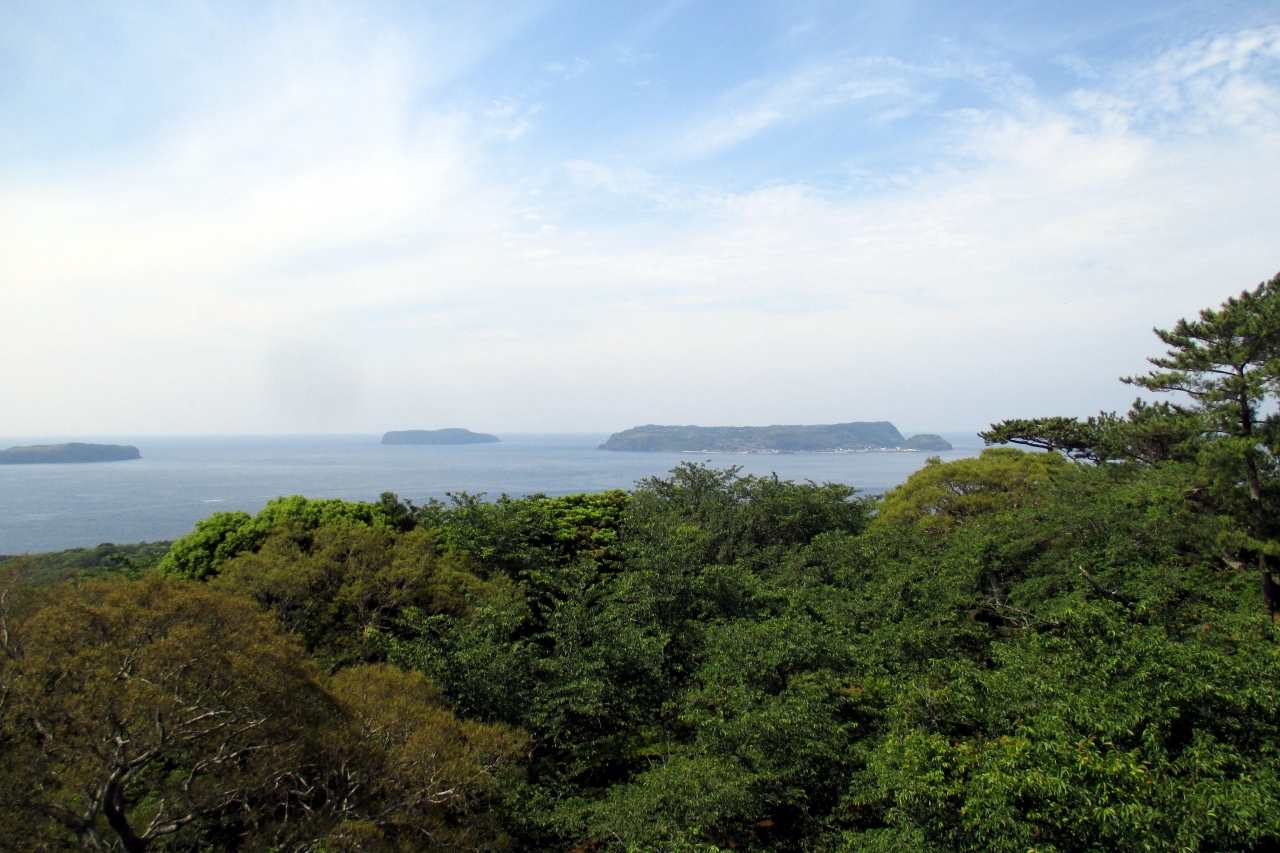 笠山の高さは112mほどとのことです。山頂ではここが火山だった証明の噴火口があり、赤褐色の溶岩を間近に見ることが出来ました。東麓には国の天然記念物に指定されている海跡湖の明神池があり、また、西麓にいくと笠山椿群生林も見られました。小さい山ですが、場所場所によりまったく異なった自然に富んでいました。
