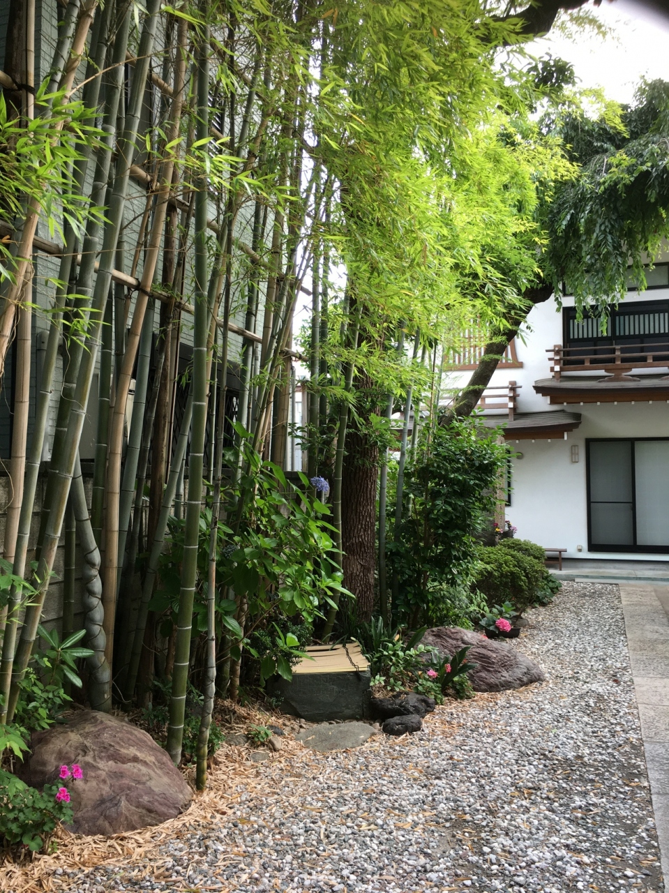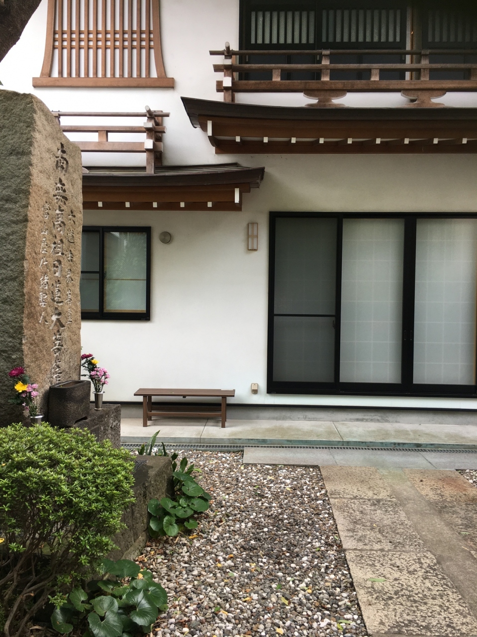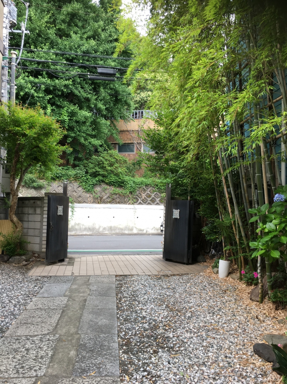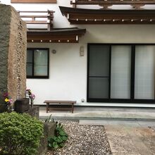 山門は扉という感じで横に開閉となり、家紋が扉にありました。短い参道の左側には竹があり、地面は砂利で、ミニ庭園のような風景でした。本殿は自宅と兼用のようで、賽銭箱はなく、椅子が置いてありました。大きな石碑があり、大菩薩と記載がありました。