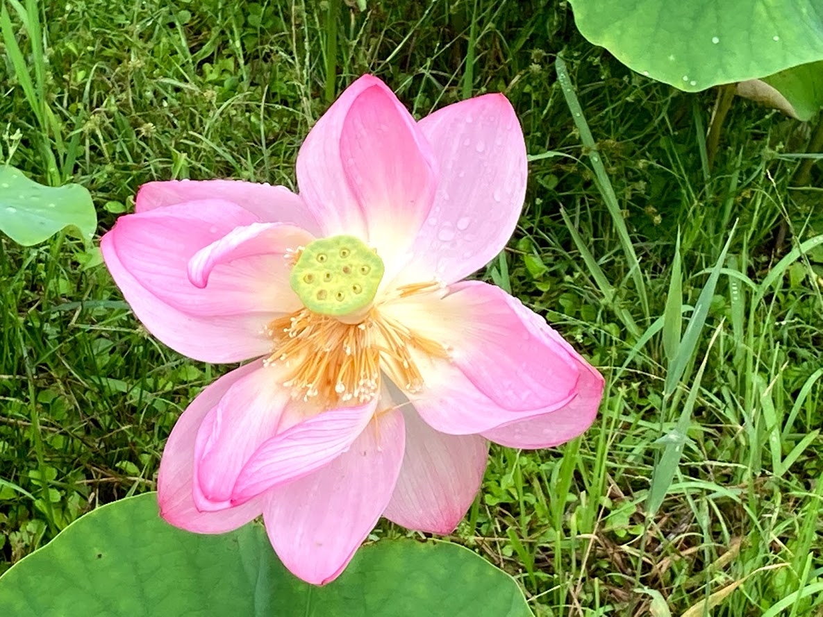 和服の係りの方に、歩いてすぐ近くで蓮の花が綺麗だと教えていただき観に行ってきました。蓮の花を群生でこんなに近くで見たのは初めてだったので観れてありがたかったです。