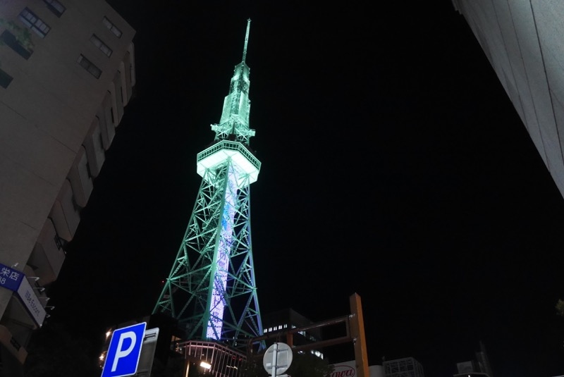 テレビ塔です。名古屋のシンボル的存在で、東海地方のニュース番組では天気予報のときに必ずうつるところです。なので、テレビを通じて含めだと自分は昼間の状態のほうを見ることがほとんどなのですが、きれいだなと思うのはどちらかといえば夜。ライトアップの色合いが日替わりではなく刻々と変わってゆくので、一晩のうち、数分のうちにいろいろな表情を楽しむことができます。
