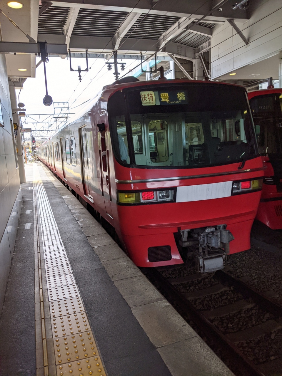 名鉄名古屋本線は、名鉄岐阜駅と豊川駅間の路線です。金山駅から東岡崎駅まで利用しましたが、快特に乗りましたが、車内は空いていたので座ることができました。30分程の乗車時間でしたが、ゆったりと過ごすことができて良かったです。