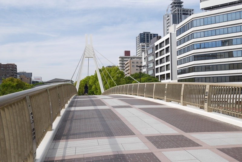 歩行者のために作られた、りっぱな吊り橋。ただの歩道橋でもいいのにこんな装飾のある橋にしちゃうなんて、名古屋の人のデコっていきたい精神を感じずにはいられません。交通量の多い桜通にかかっているので、信号でも、地下道(地下街)でも渡れますが、こうして第三の選択肢があるのはありがたいです。