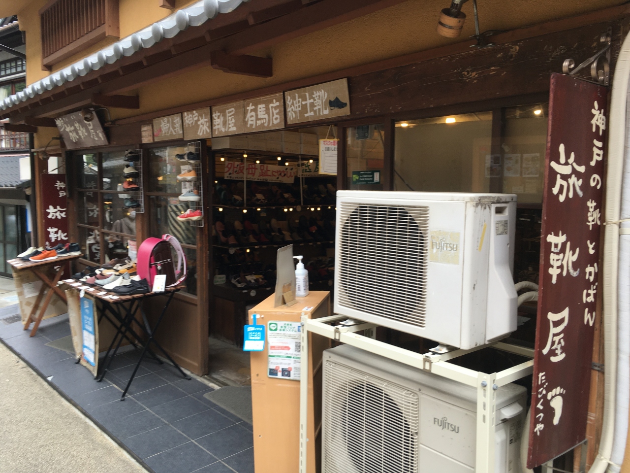 有馬温泉街の中心、湯本坂にあります。周囲はお土産や飲食店が多い中、突如に靴屋さんがあったので少し驚きました。神戸の靴屋さんで、歩きやすい、履きやすい、旅行に出かけたくなるような靴をコンセプトにされているとのことです。坂道が多い有馬では好まれそうだと思いました。