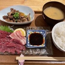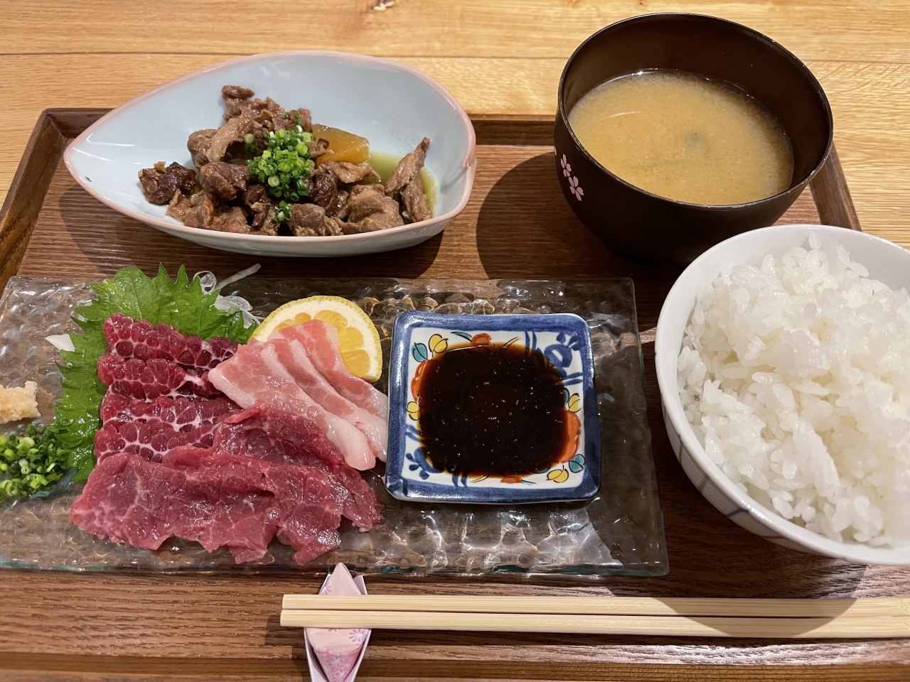 馬刺しは幾らか高級ですが、卸売りの店らしく、少しリーズナブルのようです。柳橋市場の中ではおしゃれな店です。ランチメニューで馬刺し3種盛りと煮込みのセットを食べました。馬刺しは他の店では冷凍のこともあったりするので、ここはお勧めです。