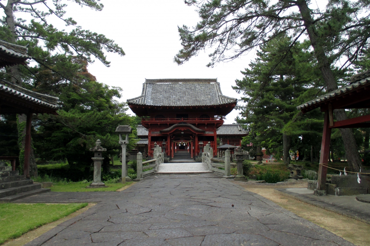 JR萩駅から唐樋札場跡に向かって真っ直ぐ道が伸びていますが、昔の萩往還だった道だそうです。天神様と呼ばれた金谷神社(金谷天満宮)はその道路に面してありました。江戸時代にはこの神社の前に萩城下町の表玄関となる大木戸が置かれていたそうです。日暮れから夜明けまでは木戸は閉められ、通行できなかったそうです。
