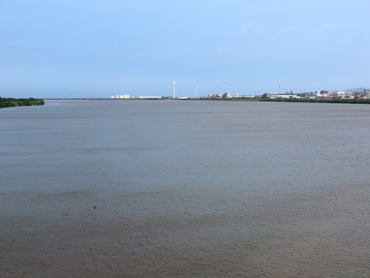 酒田市を訪れたときに最下流部を訪れました。さすが芭蕉の句にも詠まれた東北有数の大河、という感じで海のような川幅の広さでした。大河探訪の際は常に河口を目指そうとするのですが、ここは中洲にゴルフ場があったり、北岸には港が整備されていて関係施設が多く見受けられました。いっぽう南岸には砂浜が広がっていて、釣り人が数人、楽しんでいました。