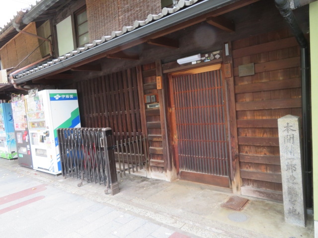 彼は、尊王攘夷運動に身を捧げた志士で、こちらの場所は刺客に襲われて命を落とした場所です。石碑の文字も薄くなっていて、時の流れを感じます。京都らしい古い邸宅前に立っていて、邸宅と風化した石碑がよくマッチしています。