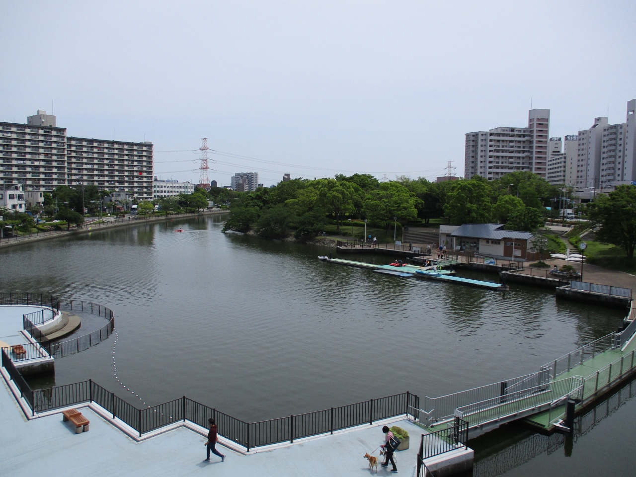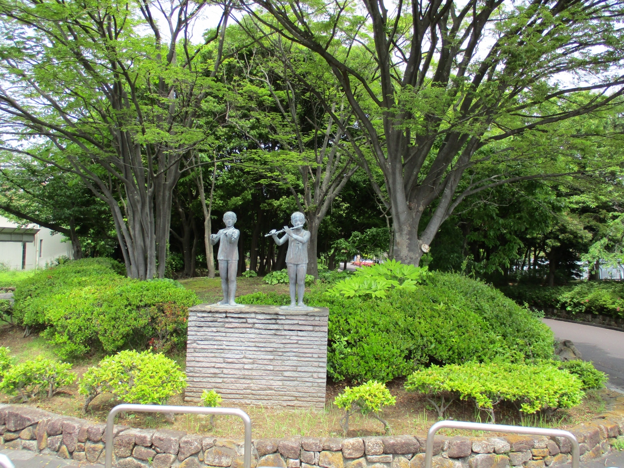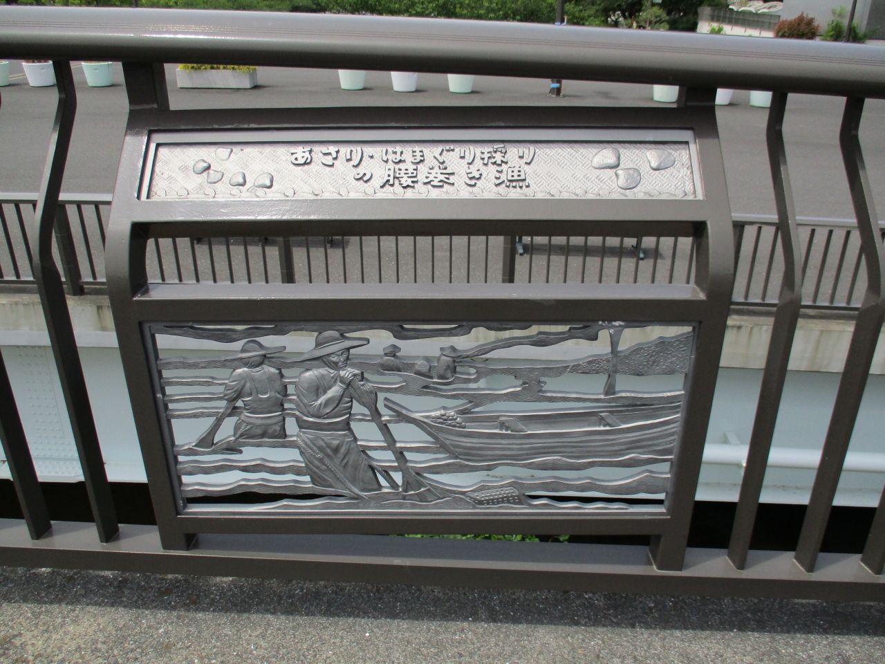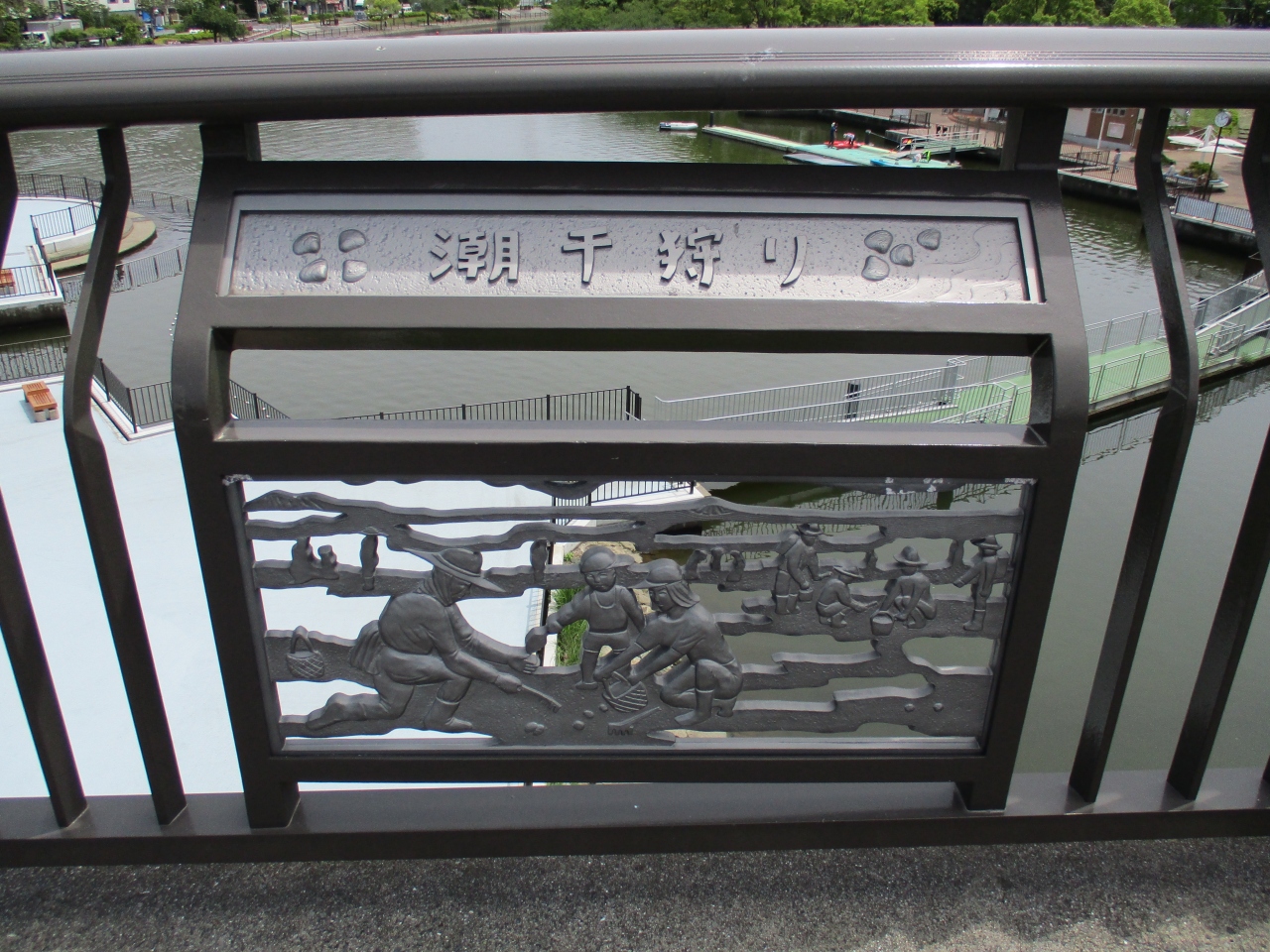 公園の中で大きな池が目に飛び込んできました。広々と開放的でカヤックで遊べるようになっていました。また池を見渡せる葛西かもめ橋には、橋の欄干にこの辺りで昔盛んだった、アサリ腰巻漁や潮干狩りの様子をモニュメントにして、取り付けてありました。また木々に囲まれた小路には、子供たちが音楽を演奏している銅像も建っていました。