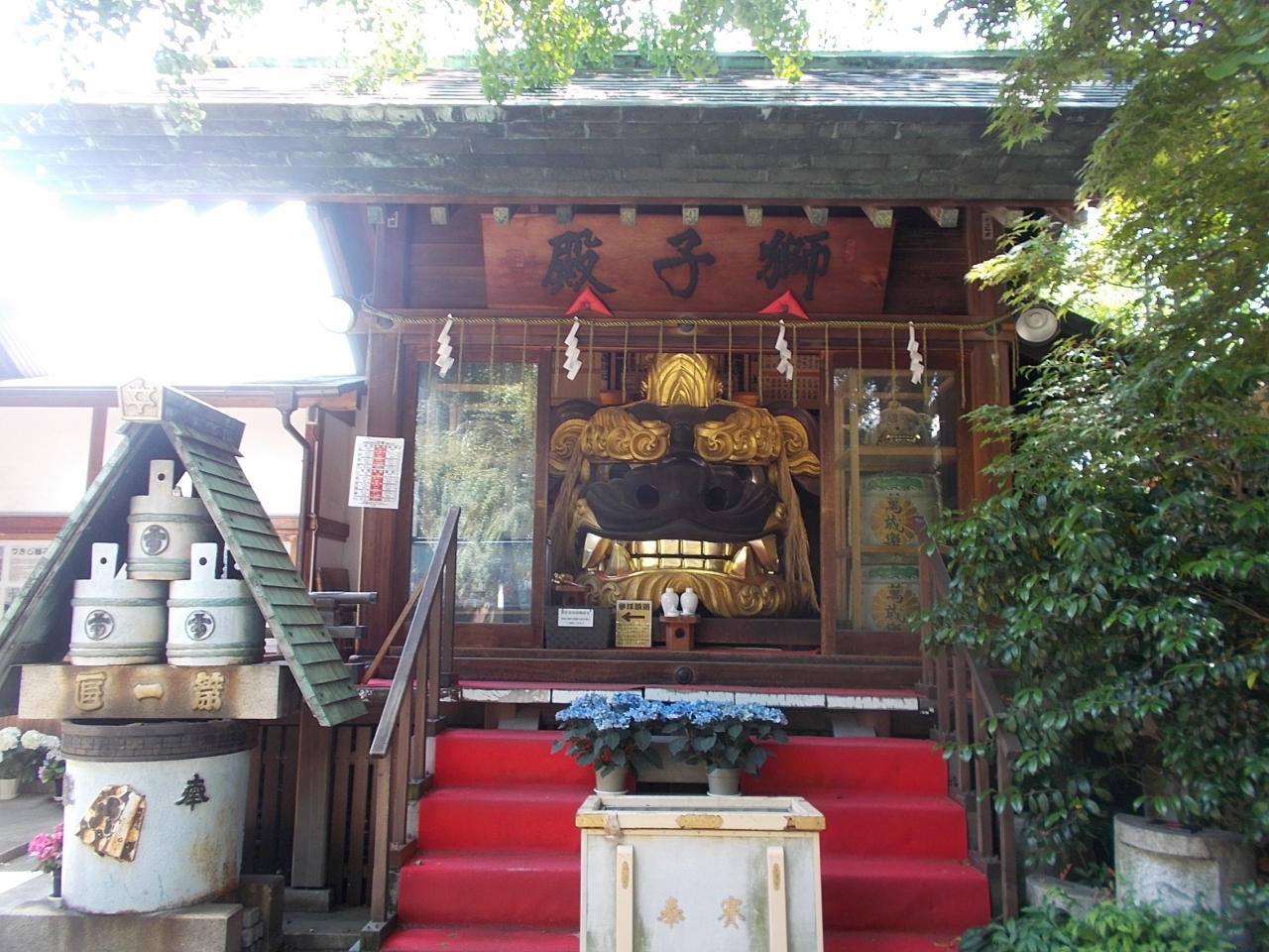 大きな獅子の頭部が奉納されています。