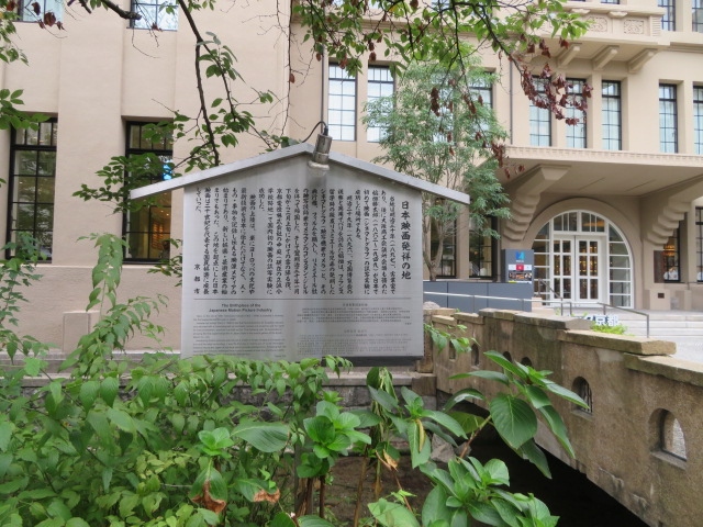 ヒューリック京都というオシャレなホテルの前に案内板だけ立っています。ここは、明治30年に、後に大阪商工会議所会頭も務めた稲葉たち勝太郎さんが日本で初めて映画(シネマトグラフ)の試写実験に成功した場所です。そんな映画発祥の地が京都だったとは意外ですね。
