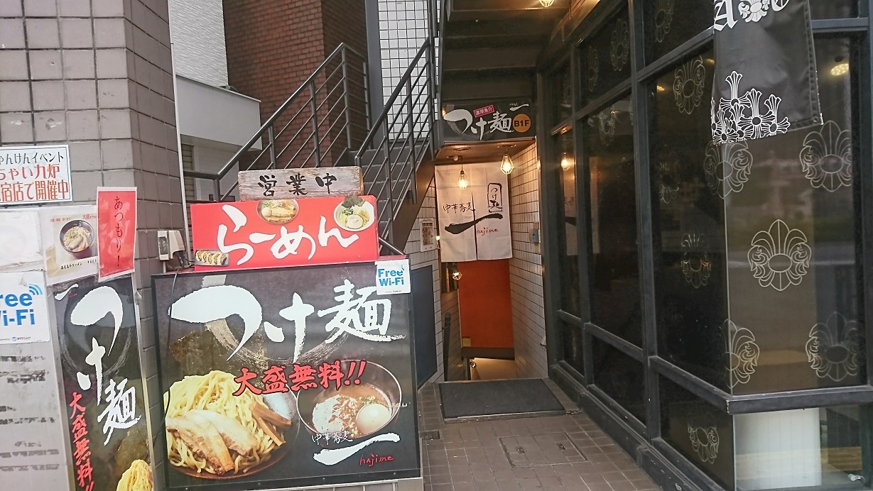 原宿の明治通り沿いのビル地下1階にあるつけ麵屋さんです、ランチで濃厚魚介らーめん細麺をいただきました。具はチャーシュー、メンマ、白ネギ、青ネギで、ストレート麵と魚介系スープの一品です。魚介系スープは美味しいと思いましたが、麵がかなり硬めで、粉っぽい感じでした。