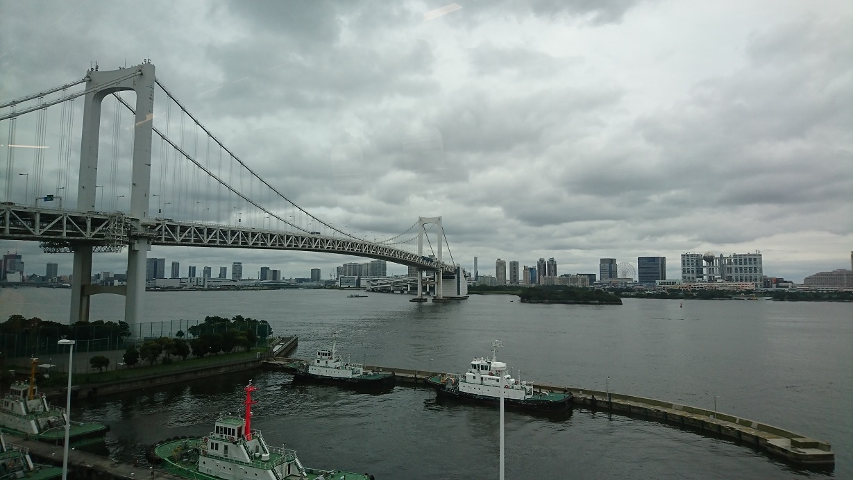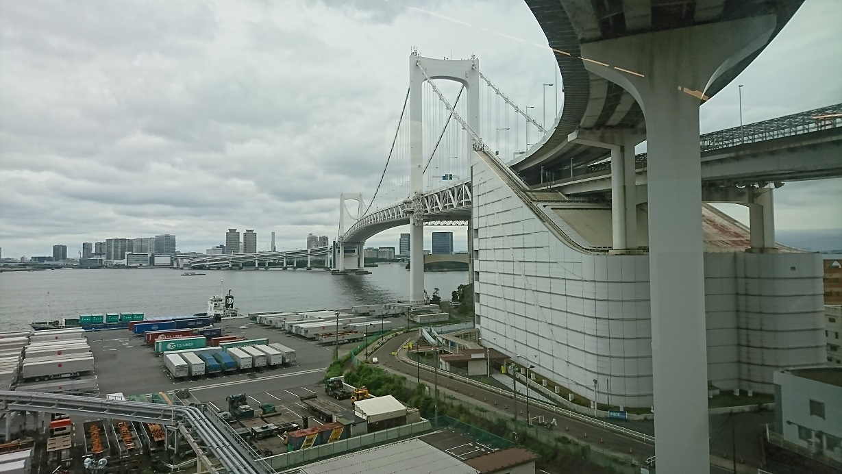 港区芝浦とお台場地区を結ぶ吊り橋で、完成したのは平成5年(1993年)。橋には首都高速道路、一般道路、新交通システムゆりかもめが通っていて、夜間はライトアップされます。私はまだ経験していませんが、歩いて渡る事も出きるので、いつかチャレンジしたいと思っています。