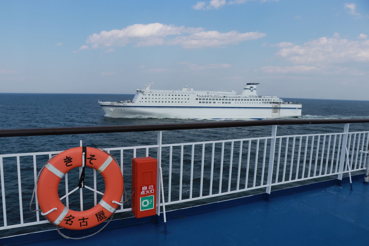 苫小牧~名古屋は全部乗り通すと36時間という国内フェリー路線では最長航路。正直なところだと飽きないわけではありませんが、携帯などが圏外になるエリアもあり何も考えずに日常を忘れ、ぼーっとするのは最高で優雅な時間を過ごすことができるのは非常に魅力的です。早割で最大半額の他、A期間と呼ばれる日程では一人利用でも個室の貸切料金がかからないので手軽に船旅を楽しむことができます。一番のオススメは仙台~名古屋での僚船とのすれ違い。船内放送で案内もあるのでしっかり準備して見送りたいところです。