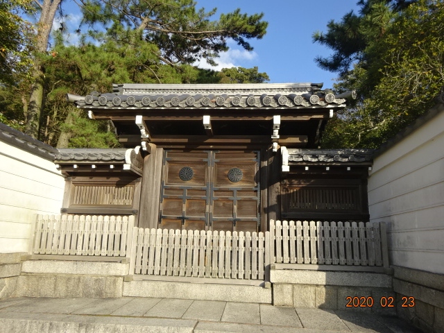 赤間神宮内にひっそりと建っています。中に入ることも出来ないので、私たちが訪れた時は誰もいませんでした。菊の御門と前にある看板でそれと分かりますが、見落としてしまう程目立たないです。当時数えの7歳だったという幼い帝を思うと哀れを誘います。