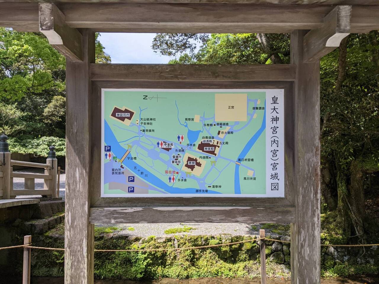 伊勢神宮内宮は、宇治山田駅からから車で15分程のところにありました。広大な敷地のほとんどが深緑の森と言うこともあり、神秘的な雰囲気が漂っていました。内宮入口に架かる宇治橋からは正宮までは歩いて10分程かかりましたが、その間も神聖な場所を歩いていることを感じました。