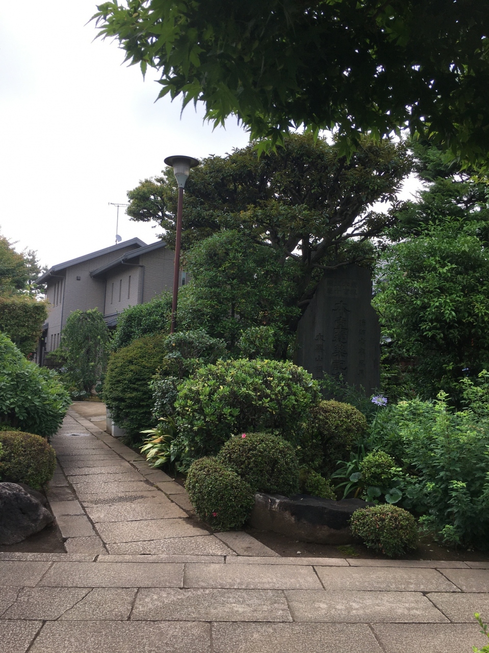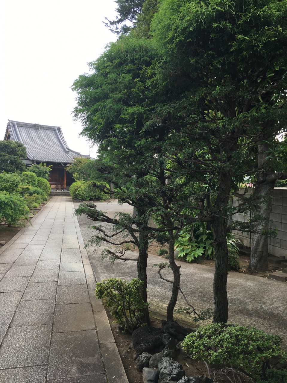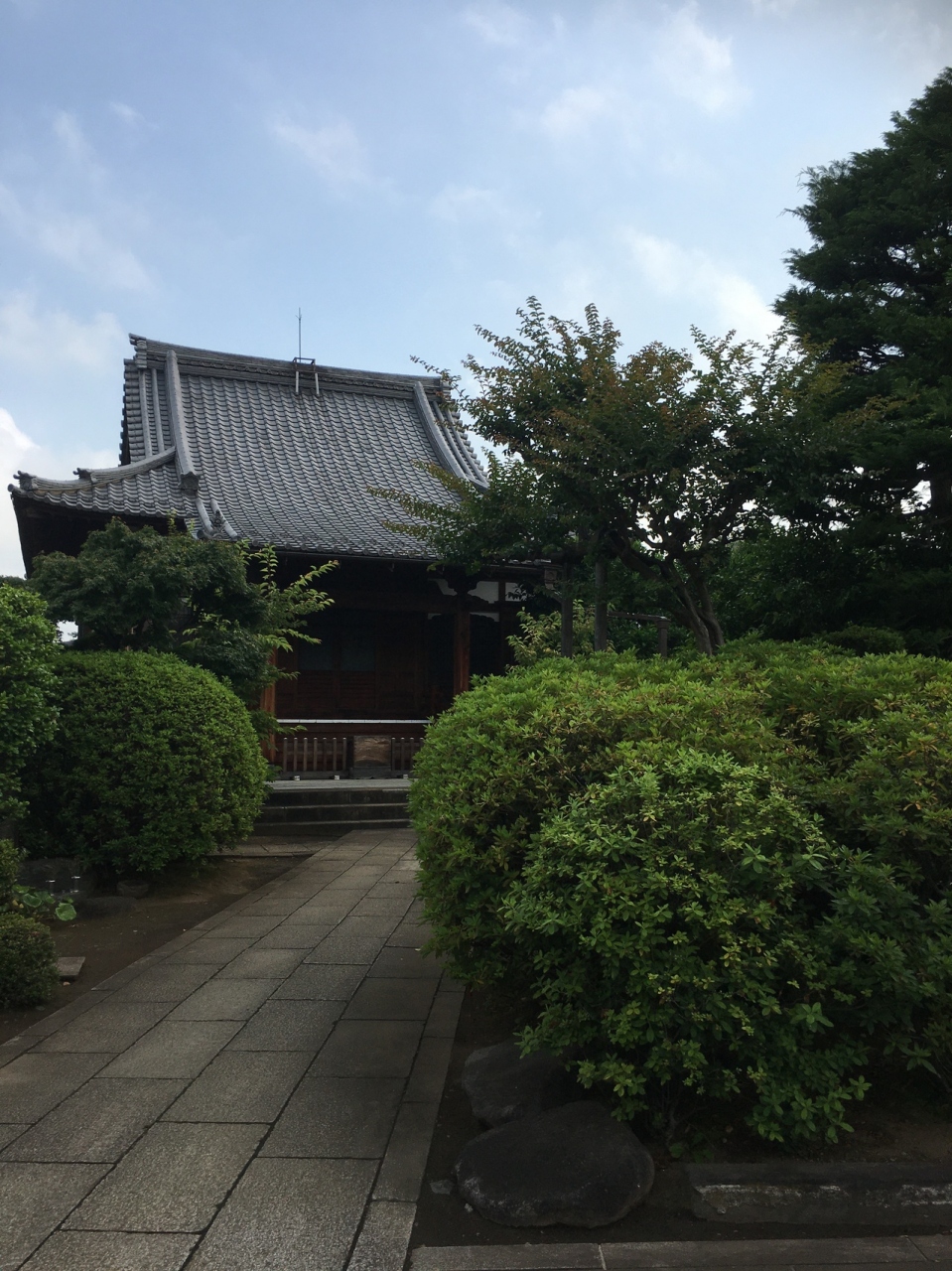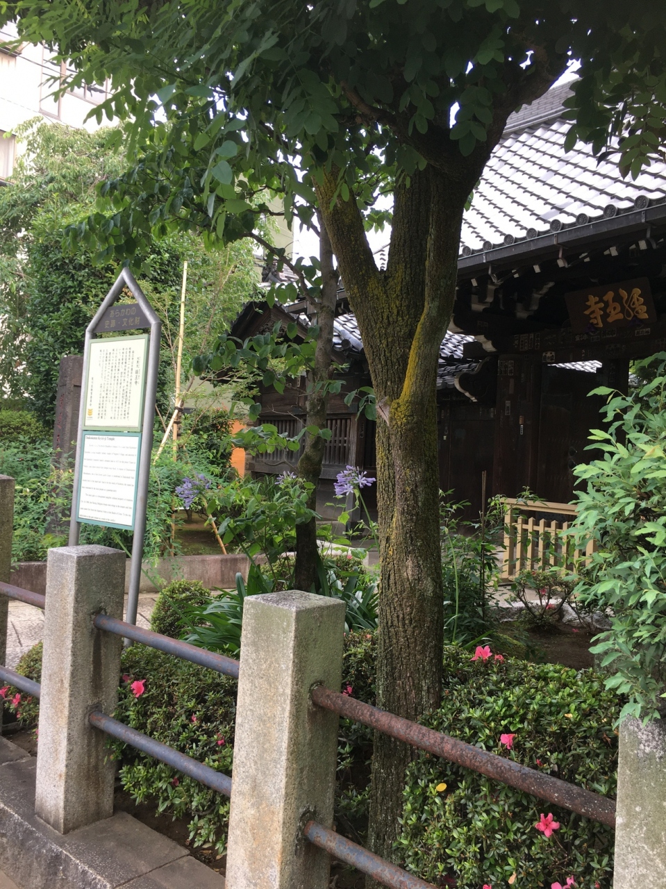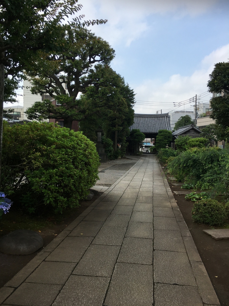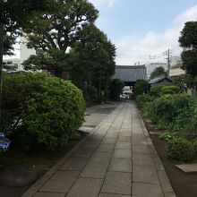 日暮里駅から坂を上がり交差点の角にありました。山門を潜ると本堂までは少し長めの距離でした。本堂の前の草木が良い感じ手入れされていました。境内も草木が多く、整備されていました。諏訪台通りには面した寺の壁が長い壁はでした。