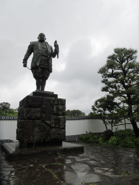 静岡の駅前ロータリーにある家康の銅像です。軍配を持って堂々と立っている徳川家康の銅像です。こちらは大人の姿の銅像ですが、近くには幼少期の家康の銅像もあります。さらに駿府城のところには歳をとった銅像もあり、静岡市内で3つの銅像がみられるので比べてみるといいかも。