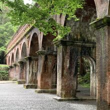 境内の南東には 琵琶湖疏水の流れる 煉瓦造りの水道橋「水路閣」が 美しく佇んでいます。