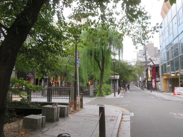 地元の方に、「ここが三条小橋商店街ですよ」と教えていただきました。アーケードはないですが、少しお洒落なお店もあります。こちらは、アーケードがない分、片側はお店、もう一方は、高瀬川という運河の風景が楽しめて散策にいいですね。