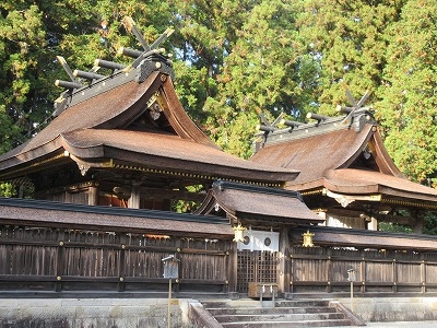 全国の「熊野神社」の総本宮にあたる熊野三山。三山の中でもとりわけ古式ゆかしい雰囲気を漂わせるのが、聖地熊野本宮大社。3つの社殿が並んでいて、檜皮葺の社殿が重厚さを感じさせます。