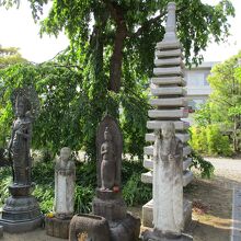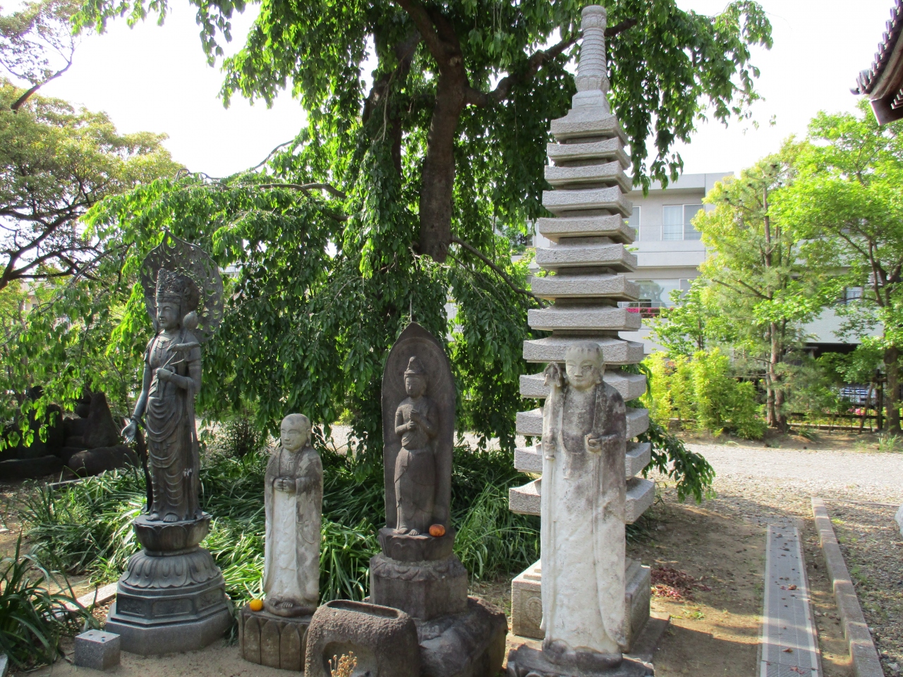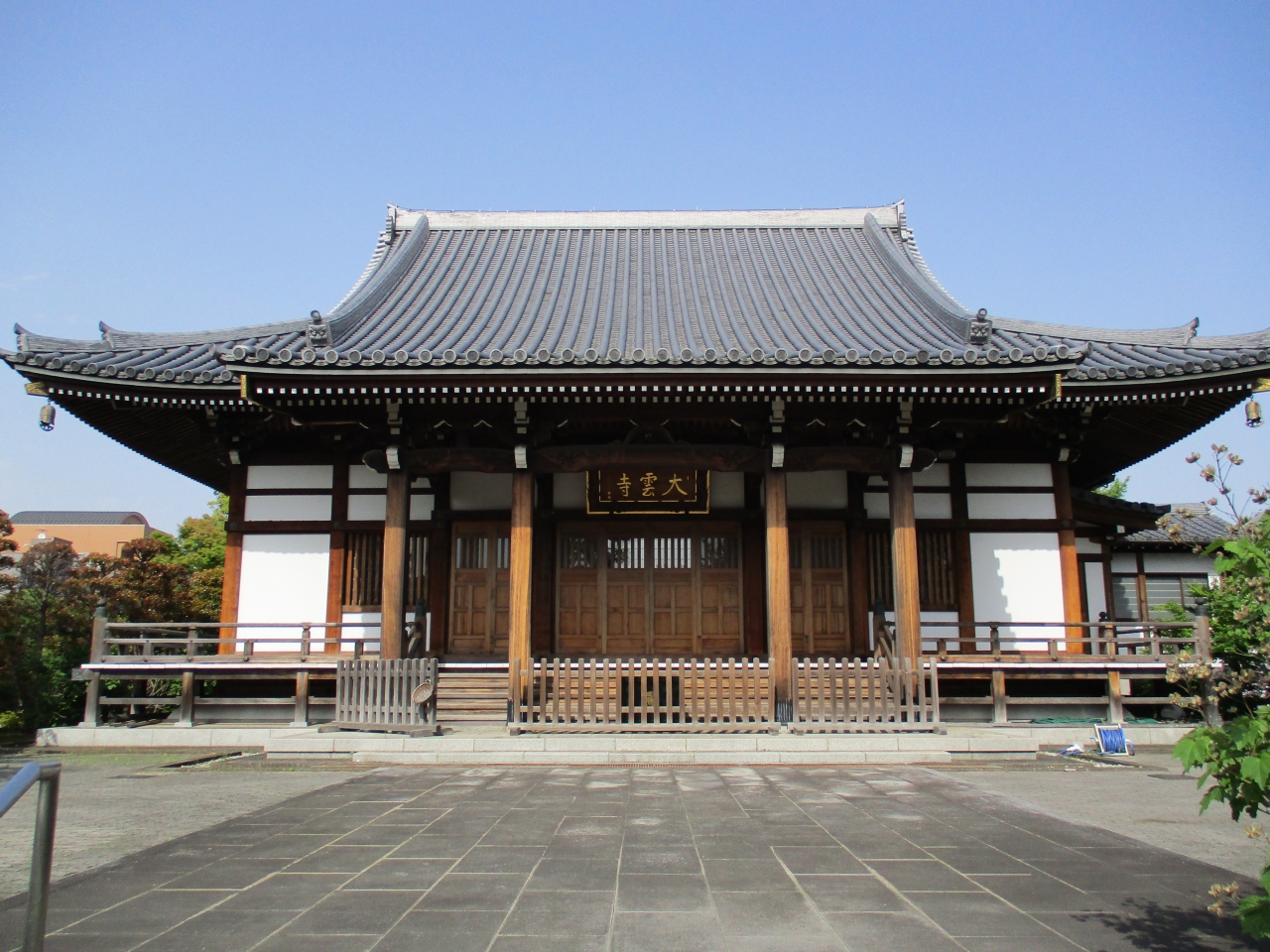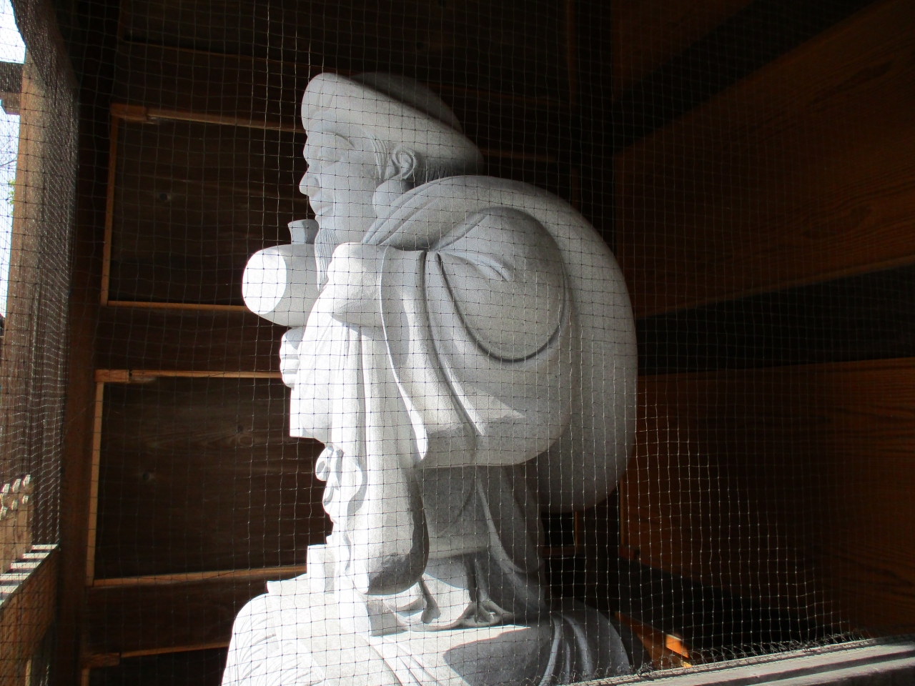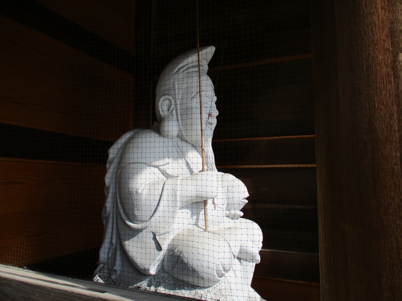 とても規模が大きなお寺で、有名な歌舞伎役者のお墓があるようです。境内に入って本堂までの参道に、立派な山門が建っていました。山門の左右には、向かって右側に太公望、左側に大黒天の像が飾ってありました。本堂は瓦屋根でとてもシンプルな造りですが、風格が感じられました。他に鐘撞堂も建てられていました。