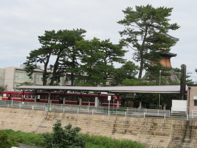 高松築港駅と琴電琴平駅を結ぶローカル列車です。一駅だけちょい乗りしましたが、駅をでてすぐに、高燈籠の真横を通ります。金倉川の対岸から見ると、琴電が駅に入ってくる時、赤い車体と高燈篭が重なるので、絶好のシャッターチャンスです。