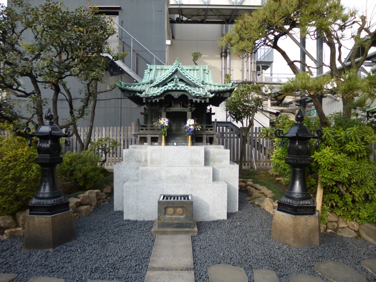 松屋銀座の屋上テラスのほぼ中央に鎮座する不動尊です。高野山龍光院から迎えた龍光不動明王を奉っています。「龍光」は、「流行」とかけているようで、なるほどと感じさせられます。社殿や周囲の樹木、敷石などいずれも美しく整備された姿が印象的でした。