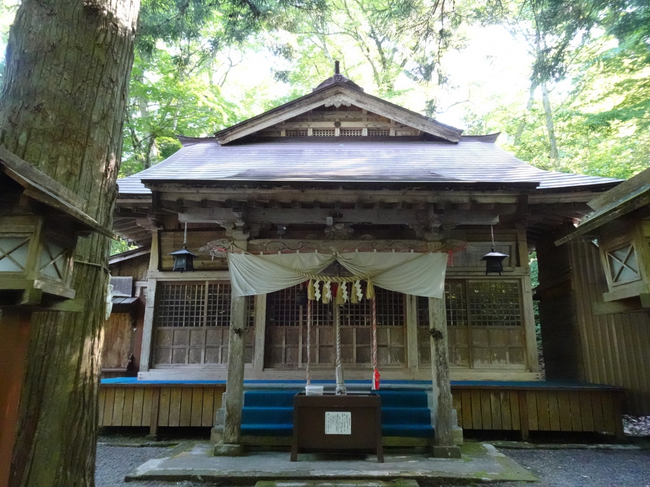猪苗代に向け県道235号線を車で進んでいた途中で立寄り。人里離れ道幅が狭まり、建造物など何もないだろうというような場所にいきなり神社が現れます。