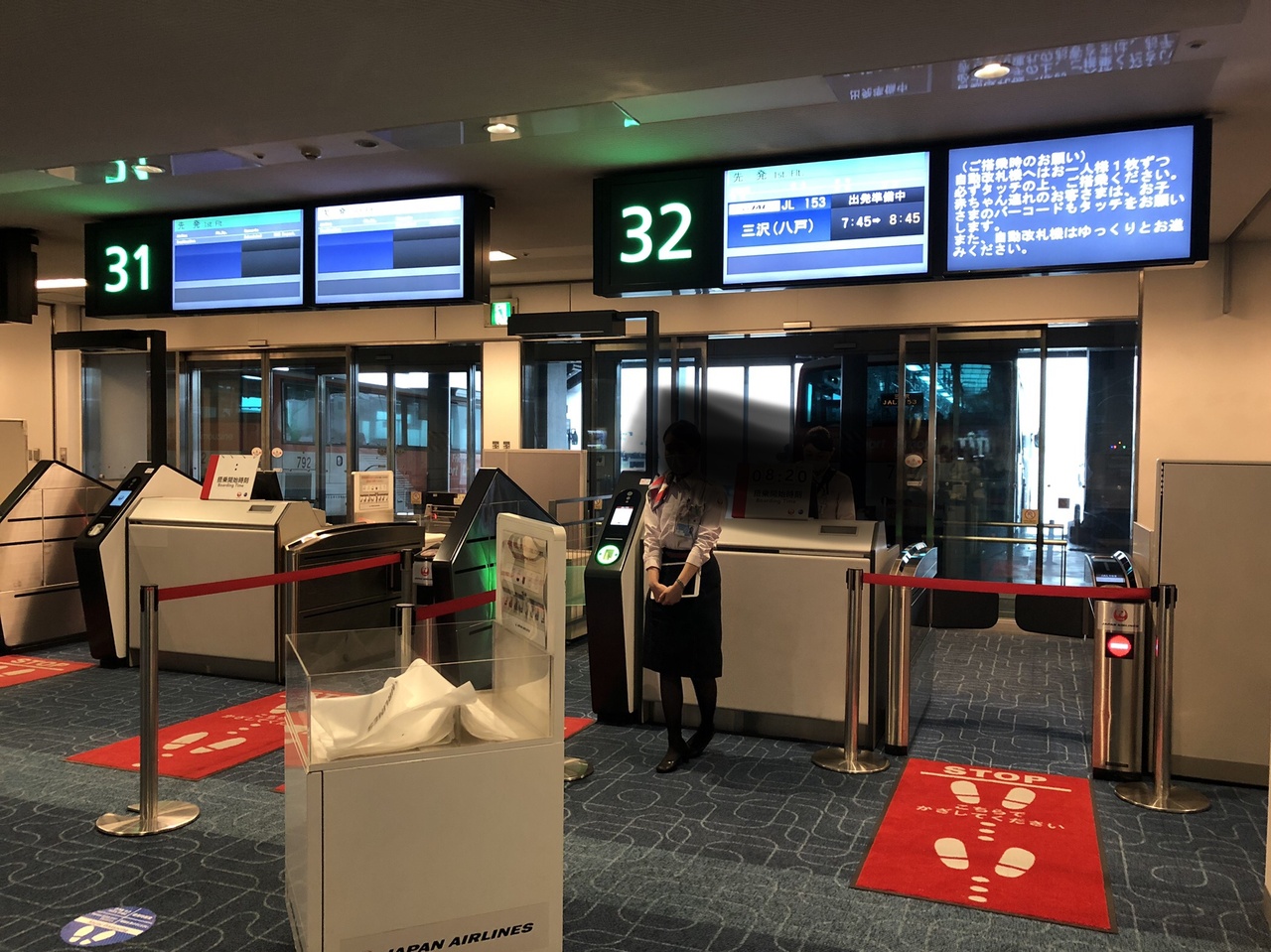 日本航空の国内線本拠地であるターミナルで、ずらりと鶴丸の並んだ光景を見ることができます。小型機材や地方と線では時と状況にもよるのでしょうが、バスゲートが使われることがあります。いわゆる沖留めと言うやつでしょうが、エプロンに降り立つのが飛行機好きにとって多少の幸福感を与えてくれます。