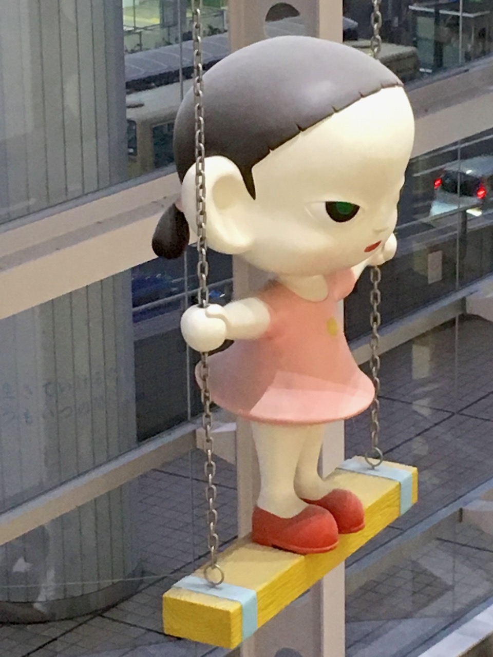 センターコートから吹き抜けを見上げると、ブランコに乗る女の子の人形がありました。